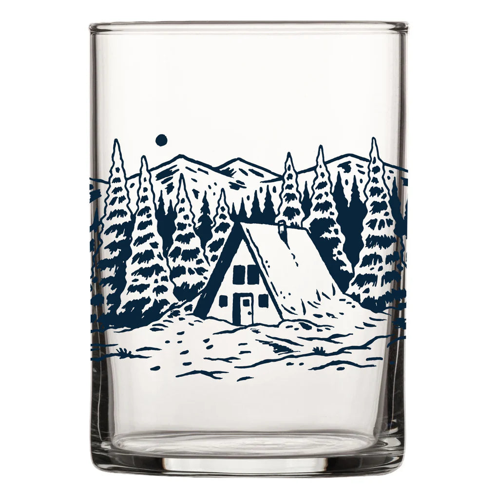 Clear Rocks Glass printed with Navy ink. 16.75 oz