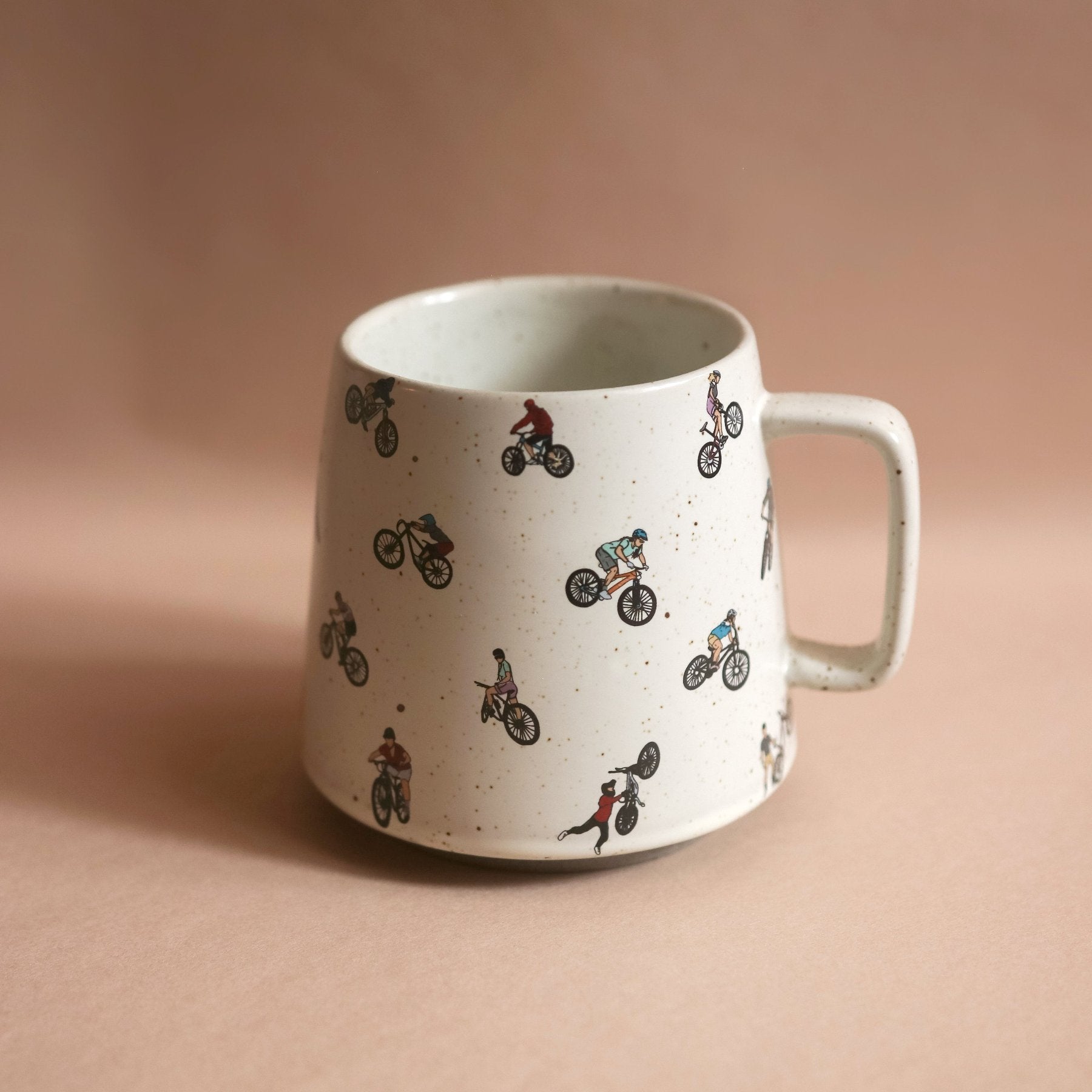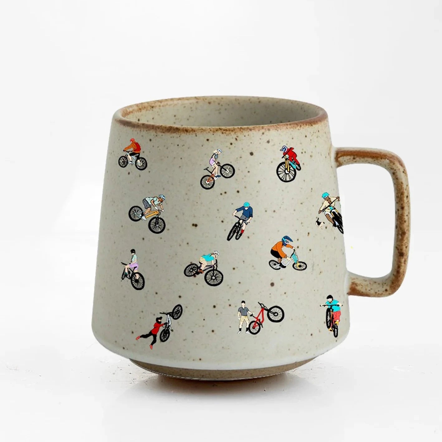 Introducing the Stoneware Mountain Biker Mugs, a harmonious blend of functional artistry and rugged adventure. Crafted from stoneware, each mug is adorned with mesmerizing artisan-drawn mountain bikers navigating challenging terrains.