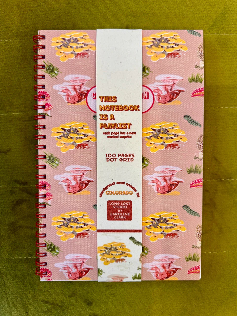 Spiral bound composition notebook with dot-grid pages, perfect for taking notes, sketching, journaling, or list-making, while the bright mushroom pattern adds a touch of personality. Printed locally right across the street from the Long Lost Studio in Colorado Springs!