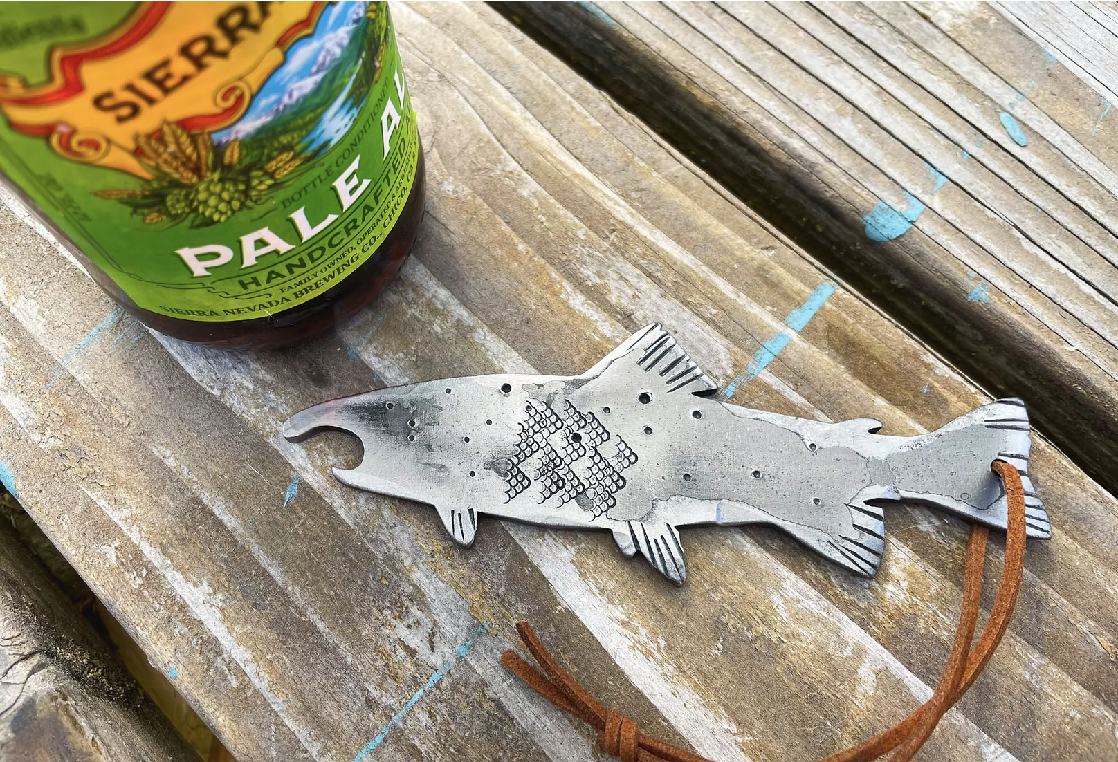 Hand-forged steel bottle opener. Perfect for your home or your adventures.