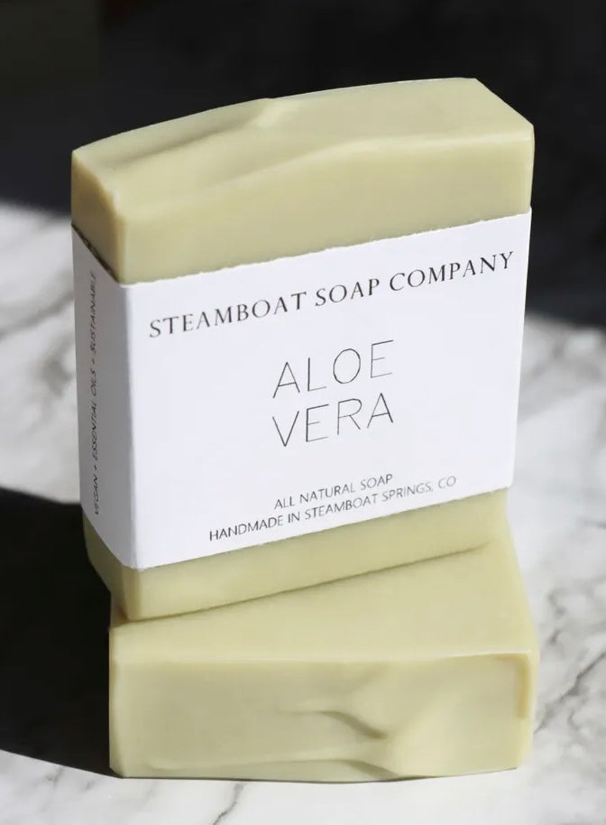 All natural, vegan soap with an essential oil blend of spearmint, lime, clary sage, cedarwood, and basil to smell like sweet succulents. Filled with the soothing properties of aloe vera, this soap offers a gentle and refreshing cleanse that nurtures your skin. Aloe vera's natural moisturizing qualities deeply hydrate, leaving your skin feeling supple and revitalized with each use. Whether you're starting your day or winding down in the evening, this soap promises a rejuvenating experience that invigorates both body and spirit.