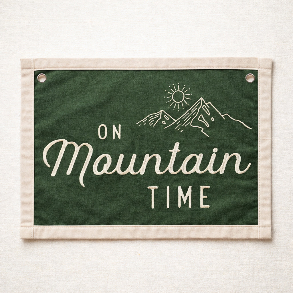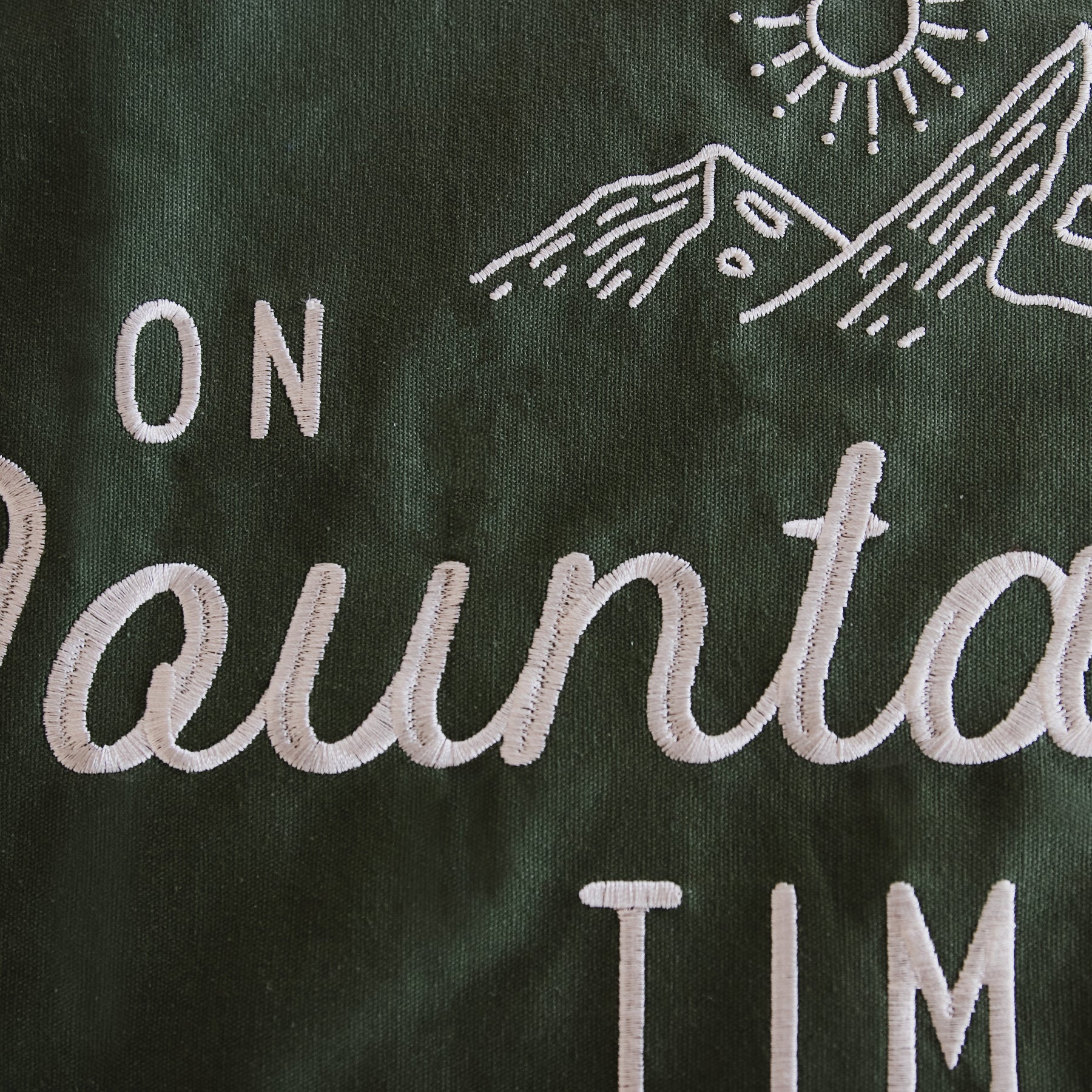 Perfect cabin decor for the mountain lover! Earthy embroidered green cotton canvas with grommets for hanging.